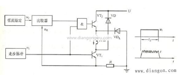 斬波器恒流電源驅(qū)動(dòng)接口具有兩個(gè)輸入控制信號(hào),其中u1是數(shù)字脈沖,u2是模擬信號(hào)。該電源接口的特點(diǎn)是高頻響應(yīng)大大改善,輸出特性接近恒定轉(zhuǎn)矩,消除了諧振現(xiàn)象,但電路更加復(fù)雜。相應(yīng)的集成電源模塊當(dāng)前可用。