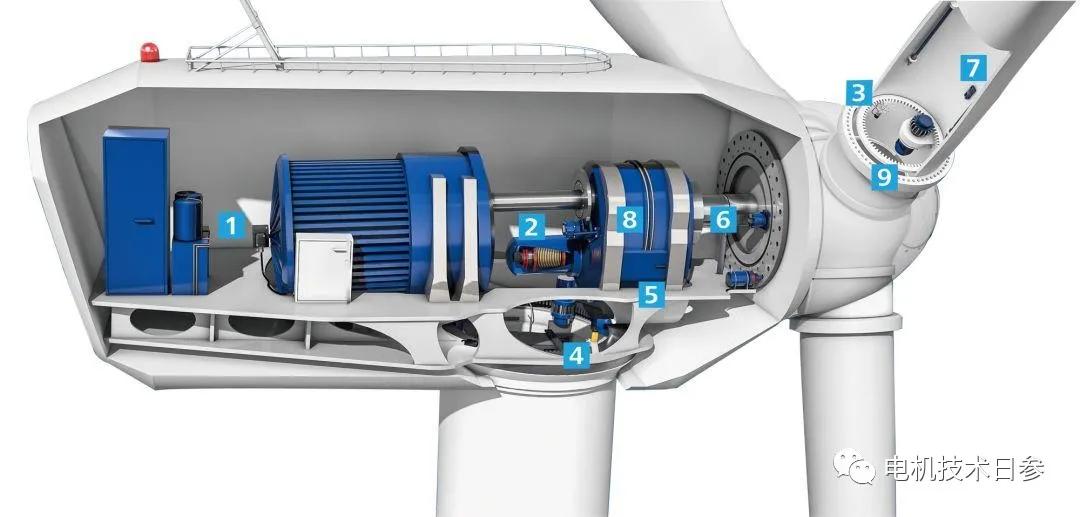 嚴格來說,減速驅動應該叫變速驅動。典型的例子是齒輪箱,這是風力渦輪機極其重要的核心部件。從發電機側看,電機輸出軸的高速由變速箱轉換為低速,以匹配葉片的低速,其結構和工作原理與傳統減速器并無不同。從葉片端開始,葉片的低速和高扭矩通過變速箱轉化為輸入到電機軸上的高速和低扭矩(相對于葉片端的高扭矩),變速箱是增速器。因此,風力發電機的齒輪箱是傳統意義上的減速器,原理相同,但速比范圍大得多,可靠性要求也高得多,主要涉及軸承、齒輪等關鍵零部件的材料和加工等諸多前沿技術,以及與偏航控制相關的復雜機構。