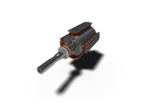 圓柱形轉(zhuǎn)子由高級(jí)鎳鉻鉬鋼的高級(jí)鍛件的整體鍛件制成。磁極由流經(jīng)繞組的電流產(chǎn)生。它們的極數(shù)較少,因此可用于高速應(yīng)用。由于它們具有均勻的氣隙,它們還產(chǎn)生較少的噪音和風(fēng)阻損失。直流電通過(guò)滑環(huán)提供給轉(zhuǎn)子繞組。一旦轉(zhuǎn)子繞組被勵(lì)磁,它們就會(huì)像磁極一樣起作用。