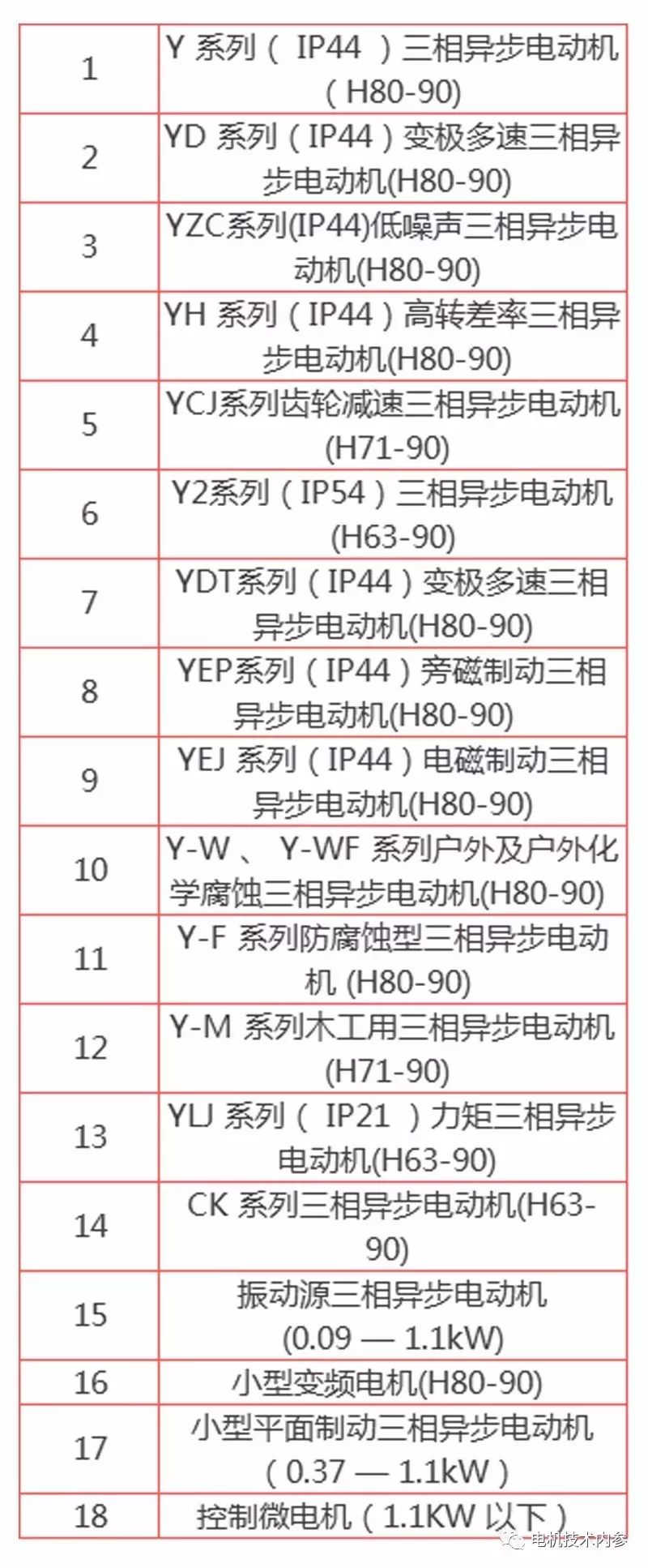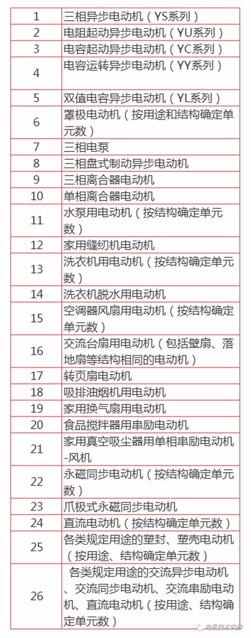 強制認證的CCC電機目錄:低功率電機(僅適用于36V以上1100W以下(同步轉速轉換為1500 rpm)的產品),具體產品包括: